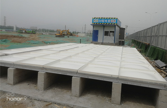 玻璃鋼聚氨酯彩鋼殼保溫水箱現(xiàn)場(chǎng)圖:客戶根據(jù)自己實(shí)際要求設(shè)置的條形基礎(chǔ),安裝工人到達(dá)現(xiàn)場(chǎng)就可以直接焊接槽鋼底座,不耽誤工期。騰翔公司具有專業(yè)的安裝團(tuán)隊(duì),保障了安裝水箱的質(zhì)量和效率。